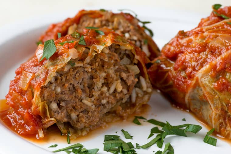 Make ahead: The sauce can be made and the cabbage stuffed and stored in the refrigerator up to 1 day ahead. Store separately and bring the sauce to a simmer before adding the stuffed cabbage to the pan.